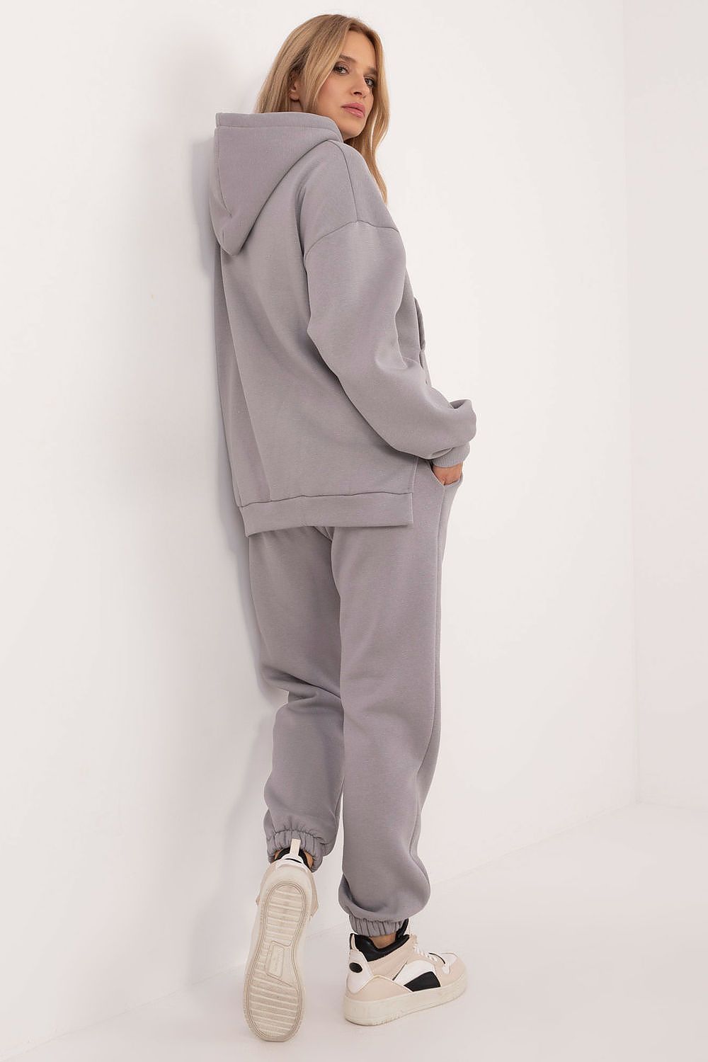 The warmed-up women's casual sweatshirt set, ideal for everyday colder days, consists of a sweatshirt and pants. The set is made of a soft and warm blend of cotton and polyester for comfort and durability. The sweatshirt has long sleeves, a hood and a large, practical kangaroo pocket, which adds a sporty touch and functionality. Thanks to its insulation, the sweatshirt is ideal for cold days, and its plain pattern adds a classic, versatile look. The long-leg pants, which end in ribbed cuffs, have a high waist to accentuate the waist and ensure comfort. There is a tie at the waist for a perfect fit. In addition, the pants have slip-in side pockets, making them a practical choice for everyday wear. The whole set combines style, comfort and warmth, being an excellent choice for casual styling.